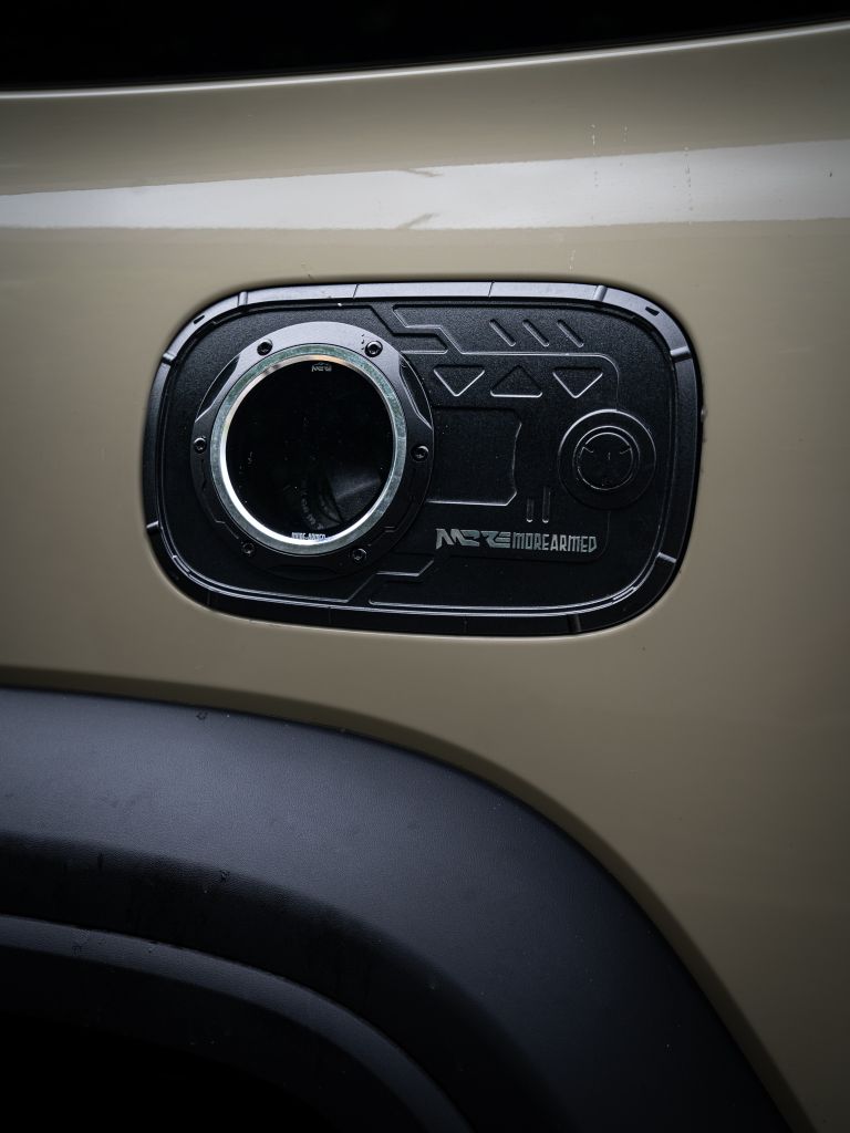 Your rig is built for the wild; its accessories should reflect that. The Fuel Door with View Window is designed with a “Power-Infused Aesthetic.”